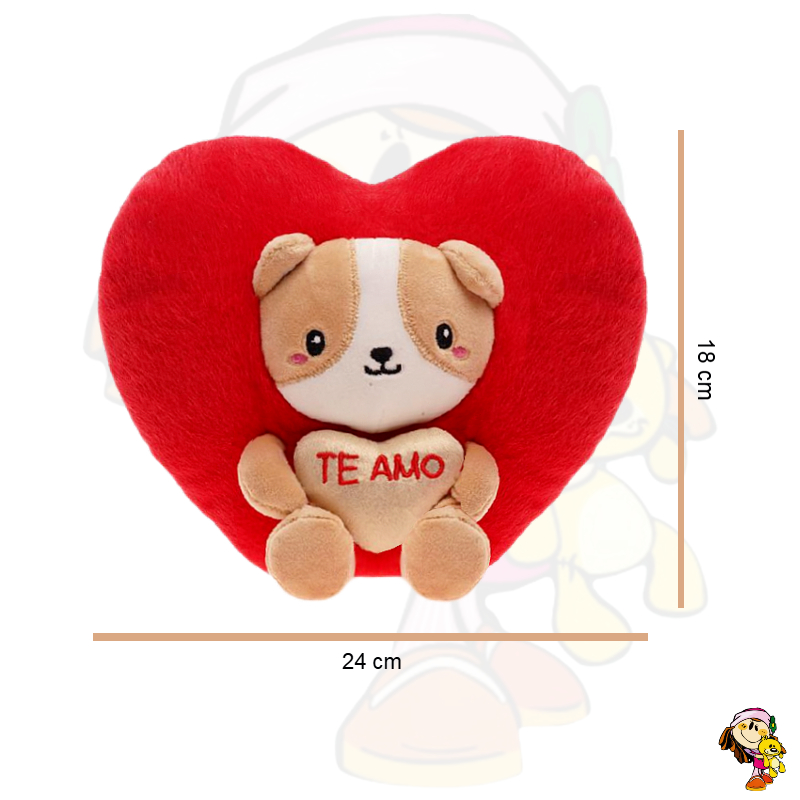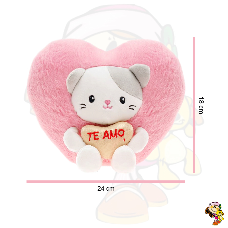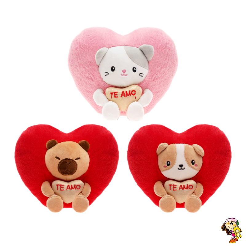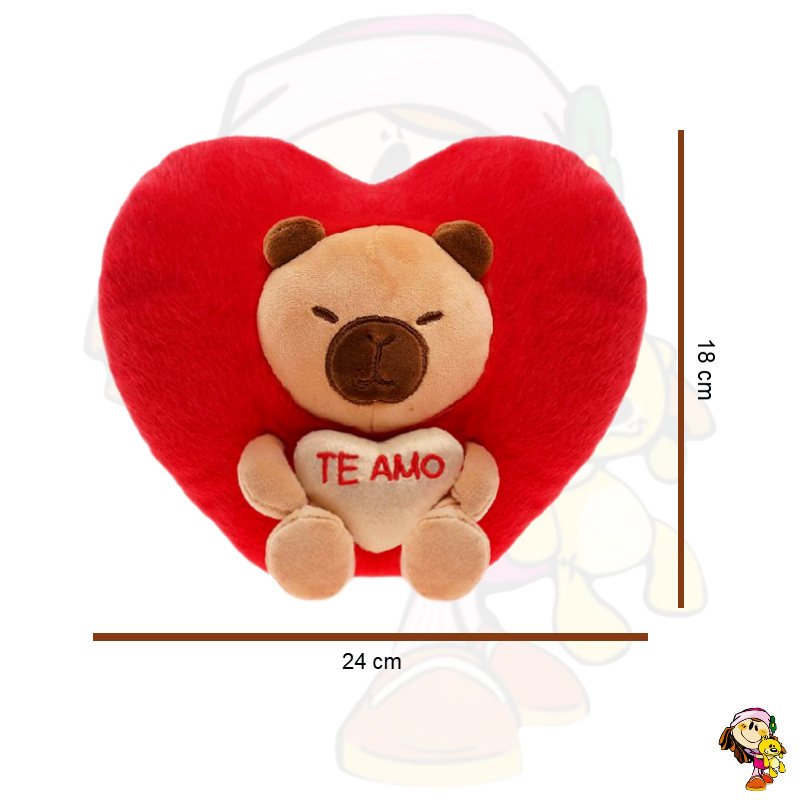 Corazon de Peluche con gato capibara shiba Te amo 18 cm
