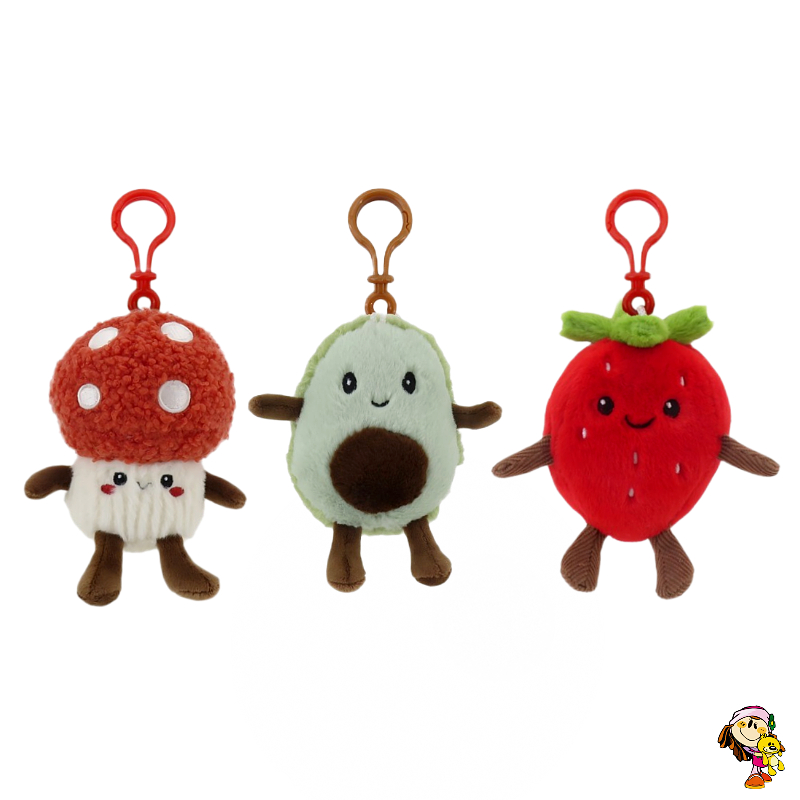 Llavero de peluche alimento frutilla palta hongo 18 cm